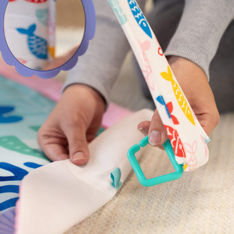 Forældre elsker, at dette alsidige aktivitetstæppe støtter babys visuelle udvikling samt fin- og grovmotoriske færdigheder.