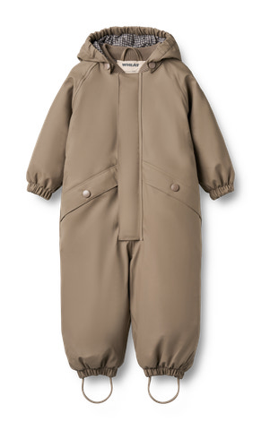 Uundværlig termo regndragt i åndbart- og vandtæt materiale til din baby. Wheat's populære termo regndragt er en sand vinder i dit barns garderobe. Dragten er lige, hvad dit barn har brug for som overgangsdragt, når sæsonerne skifter. Dragten er i åndbart polyurethan (PU) materiale og er unik, da den holder dit barn både tørt og varmt. Den har mange praktiske detaljer såsom aftagelig og justerbar hætte, ribkrave og aftagelige gummi fodstropper.