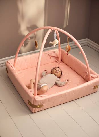 kundeservice@babysam.dkAktivitetsnesten er udviklet til at vokse med barnet, da den har flere funktioner. Brug den som kravlegård, aktivitetstæppe, legetæppe, babynest. Når baby er helt lille kan aktivitetsnesten med fordel bruges med siderne lukket og med aktivitetsstænger på, til at hænge legetøj i eller stængerne kan tages helt af og man har en større baby nest - evt. til tvillinger. Samtidig kan siderne foldes ned, hvis man vil sidde på tæppet sammen med den lille eller når den lille begynder at kravle rundt. Når barnet bliver større kan man bruge den som legetæppe med siderne foldet ned og uden stænger monteret.