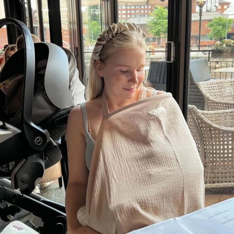 TISU ammesvøb giver mødre en bedre mulighed for at amme hvor som helst når de er på farten - butikker, caféer, ja alle steder. TISU ammesvøb hjælper dig med at skabe en behagelig og privat atmosfære, mens du ammer; for dig og din baby. Bare tag ammesvøbet over dit hoved, og du er klar til at begynde at amme! TISU ammesvøb er et førsteklasses produkt lavet af let vaskbart 100% musselinbomuldsstof og designet til at være let og åndbart. Stor halsudskæring giver dig direkte øjenkontakt med din elskede baby, så han eller hun altid kan se dig smile! Opbevar dit TISU ammebetræk med den matchende pose i en pusletaske, eller fastgør det til vognen for at have det med dig på farten!