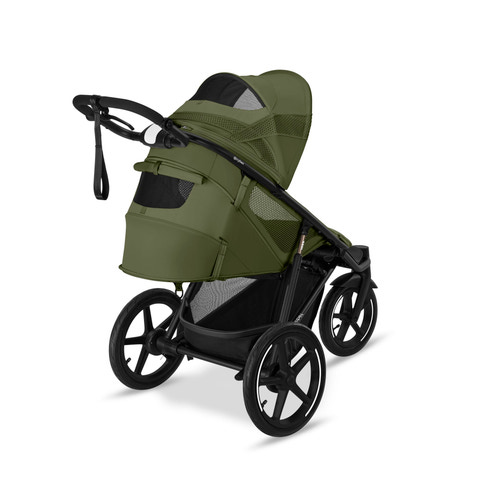 AVI Spin kan lænes tilbage til en ergonomisk lie-flat-position, som gør det muligt for nyfødte babyer at ligge komfortabelt. Der er mulighed for at fastgøre en cybex babyautostol eller liggedel ved hjælp af adaptere. Cot S Avi Spin kan tilkøbes for ekstra komfort til de første 6 måneder.