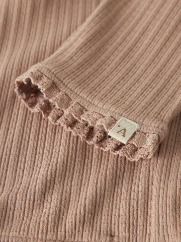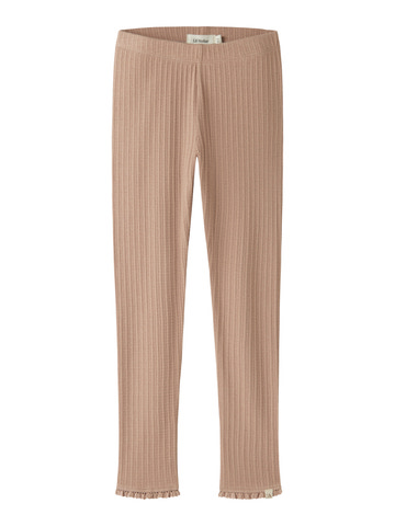 Babette Leggings fra Lil' Atelier er et skønt valg til hverdagsgarderoben. De er fremstillet i en blød og strækbar viskosekvalitet, som føles behagelig mod huden og giver masser af bevægelsesfrihed. Det ribbede materiale og de fine flæser ved anklerne tilføjer et feminint og moderne udtryk, mens den elastiske talje sikrer, at leggingsene sidder godt hele dagen. Den neutrale roebuck-farve gør dem nemme at matche med både kjoler, tunikaer og bluser, så de kan bruges til både leg og pænere anledninger. Perfekte til både børnehave og hyggestunder derhjemme.