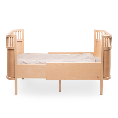 Sebra Sengen Baby & Jr. vokser og udvikler sig sammen med dit barn, og giver trygge rammer så barnet kan sover trygt og godt. Ikke kun sengen udvikler sig, men barnet har også her mulighed for at vokse og udvikle sig. Sengen er en generationsseng, som kan gå i arv – fra barn til barn, fra familie til familie. Et stykke dansk designhistorie og en tryg og sikker udtræksseng til baby og junior. Sebra Sengen kan anvendes fra nyfødt hvor sengens bund er hævet til midten, således baby i de første måneder er lettere at løfte op fra sengen og lægge i sengen. Den hævede sengebund gør det nemmere at få et godt og sikkert greb om spædbarnet når det skal tages op og samtidig kan forælderen bedre støtte babys baghoved og nakke, når baby skal lægges i sengen, fordi afstanden til sengebunden ikke er så lang – det er både sikkert for baby og bedre for forælderens ryg. Når baby vokser til en lille spilop der begynder at gøre tegn til selv at kunne komme op i siddende eller kravlende position sænkes sengens bund. Husk madras og andet tilbehør så du skaber et dejligt sover miljø til barnet.