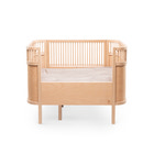 kundeservice@babysam.dkSebra Sengen Baby & Jr. vokser og udvikler sig sammen med dit barn, og giver trygge rammer så barnet kan sover trygt og godt. Ikke kun sengen udvikler sig, men barnet har også her mulighed for at vokse og udvikle sig. Sengen er en generationsseng, som kan gå i arv – fra barn til barn, fra familie til familie. Et stykke dansk designhistorie og en tryg og sikker udtræksseng til baby og junior. Sebra Sengen kan anvendes fra nyfødt hvor sengens bund er hævet til midten, således baby i de første måneder er lettere at løfte op fra sengen og lægge i sengen. Den hævede sengebund gør det nemmere at få et godt og sikkert greb om spædbarnet når det skal tages op og samtidig kan forælderen bedre støtte babys baghoved og nakke, når baby skal lægges i sengen, fordi afstanden til sengebunden ikke er så lang – det er både sikkert for baby og bedre for forælderens ryg. Når baby vokser til en lille spilop der begynder at gøre tegn til selv at kunne komme op i siddende eller kravlende position sænkes sengens bund. Husk madras og andet tilbehør så du skaber et dejligt sover miljø til barnet.
