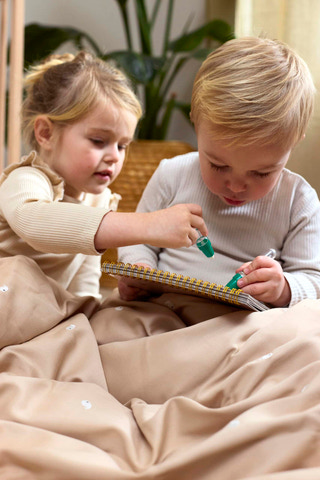 Os forældre bruger meget tid på at hjælpe vores kære små med at falde i søvn, og findes der egentlig en bedre måde at slutte dagen på end at blive puttet ned i små glimt af glæde med et kys? Lad din baby blive omfavnet af det blødeste sengesæt i 100% GOTS-certificeret økologisk bomuld.