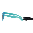 Bløde og fleksible solbriller til babyer i silikone. Elastikbåndet sættes rundt om hovedet, så de sidder på plads. Elastikbåndet kan fjernes ved hjælp af spænder i enderne af brillestængerne og kan justeres for at sikre en perfekt pasform.
