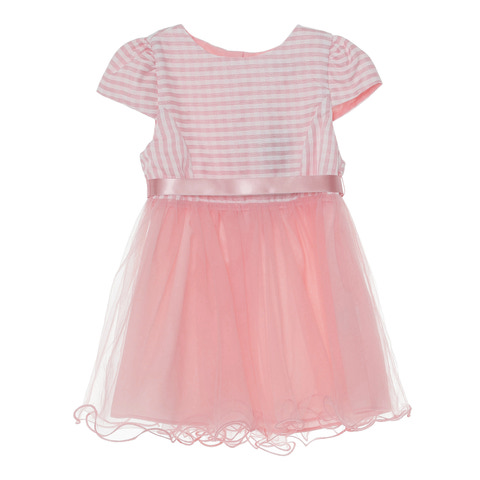 kundeservice@babysam.dkSød festlig kortærmet kjole med vævet tern på bærestykket kombineret med tyl nederdel i 3 lag . Der er satin-bånd i taljen som både kan bindes for eller bag på . Kjolen lukkes i ryggen med lynlås