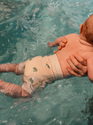 Kan bruges med eller uden badeble. Brug af badeble sammen med neopren badebuksen giver ekstra beskyttelse mod større lækager og gør rengøring nemmere.