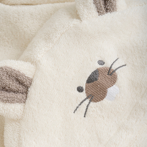Denne badekåbe er designet specielt til børn og er lavet af blød frotté, der sikrer maksimal komfort og varme. Den er både praktisk og stilfuld med et bindebælte, der giver en justerbar pasform, så den sidder perfekt hver gang. Ideel til brug efter badet eller som en hyggelig morgenkåbe.