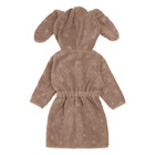 Super fin og blød badekåbe i den blødeste bomulds frotte. Praktisk bindebånd rundt om livet samt lommer fortil. Bindebåndet er påsyet bagpå så bæltet ikke falder af og bliver væk. Der er elastik i taljen så badekåben opnår en bedre pasform. Badekåben er udstyret med en dejlig stor hætte med lange kanin ører.