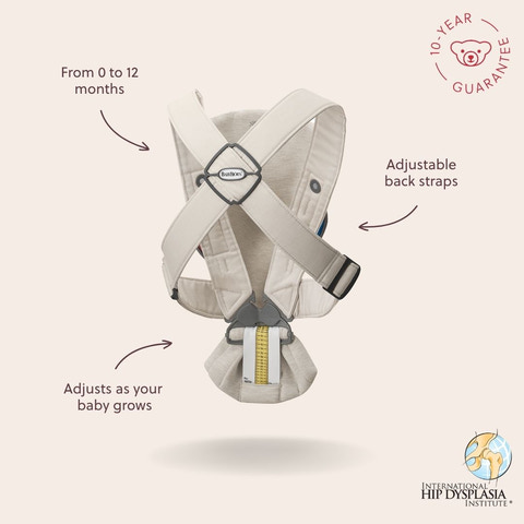 Mini-bæreselen er let at tage på og af, hvilket gør den ideel til kortere perioder. Det smarte design gør det muligt at åbne hele fronten, så du nemt kan lægge din baby ned, hvis de falder i søvn i bæreselen.