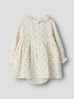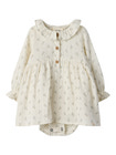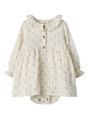 kundeservice@babysam.dkBalia Langærmet Body Kjole fra Lil' Atelier i farven Coconut Milk er en skøn kombination af kjole og body, der forener komfort og stil til de mindste. Kjolen er lavet i blød bomuld, som føles behagelig mod huden og giver god bevægelighed. De lange ærmer og den elegante krave med fine detaljer gør kjolen velegnet til både hverdag og festlige lejligheder. Praktiske knapper foran gør det nemt at tage kjolen af og på, mens det diskrete print tilføjer et sødt og klassisk udtryk. Perfekt til at holde barnet velklædt og komfortabel hele dagen.