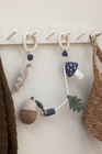 De fire bløde figure på barnevognskæden - et agern, en svamp og to blade - har fine detaljer og er fremstillet i certificeret økologisk bomuld. Barnevognskæde sættes nemt fast i hver side af barnevognen med praktiske C-ringe, og fungerer på samme måde som en uro, der fanger de mindstes interesse og virker beroligende. Kæden er 52 centimeter lang og elastisk, så den også kan passe til en lidt bredere barnevogn. Køb barnevognskæden til nybagte forældre, der gerne vil have dansk design og god kvalitet.