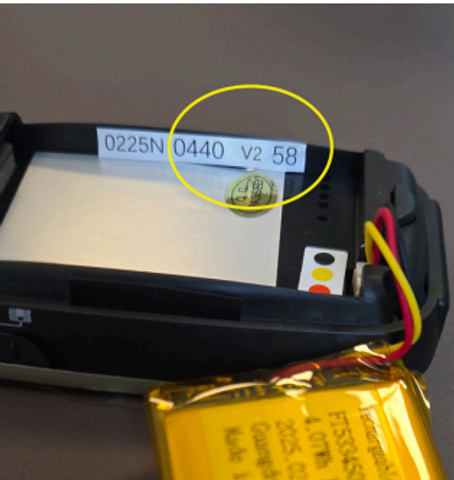 Denne model er version 2, og kan derfor ikke kombineres med version 1. - Version nr. ses ved batteri "boksen".