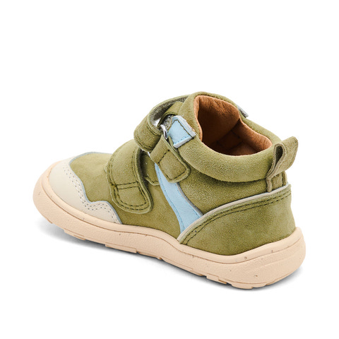Becky Barefoot Sneaker fra Bisgaard i farven Sage er designet til at give dit barn den bedste komfort og støtte i hverdagen. Skoen har en fleksibel og blød barefoot-sål, som sikrer, at barnets fødder kan bevæge sig naturligt og frit, hvilket styrker muskulaturen og balancen. Den lette sneaker er fremstillet i åndbart og naturligt læder, der tilpasser sig barnets fod og giver et sundt indeklima. De to justerbare velcroremme gør det nemt for barnet selv at tage skoen af og på, samtidig med at de sikrer en god pasform. Indersiden er foret med blødt skind, som føles behageligt mod huden og minimerer risikoen for irritation. Skoens design er både moderne og praktisk, og den flotte grønne farve med lyseblå detaljer passer til de fleste outfits. Becky Barefoot Sneaker er et oplagt valg til aktive børn, der har brug for en sko, der følger med i alle dagens eventyr – både inde og ude. Skoen er let, slidstærk og giver optimal støtte til små fødder, så barnet kan lege og bevæge sig frit.