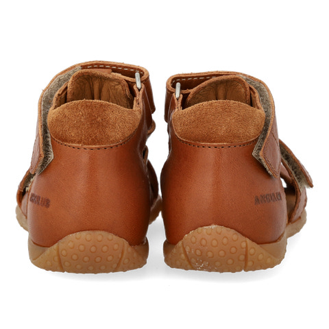 Angulus Begynder Sandal med velcro i farven Cognac/Cognac er den perfekte første sandal til små fødder, der skal ud på eventyr. Sandalen er designet med fokus på komfort og støtte, så barnet får den bedste start på gåturen. Den bløde og fleksible gummisål giver god bevægelighed og stabilitet, mens det naturlige læder sikrer et sundt fodklima. Sandalen har to praktiske velcrolukninger, som gør det nemt at tilpasse pasformen og tage sandalen af og på - også for de mindste. Den lukkede tå beskytter små tæer, og den åbne hæl og sider giver god ventilation på varme dage. Angulus er kendt for deres høje kvalitet og klassiske design, og denne sandal er ingen undtagelse. Perfekt til både daglig leg og pæne anledninger, hvor komfort og stil går hånd i hånd.