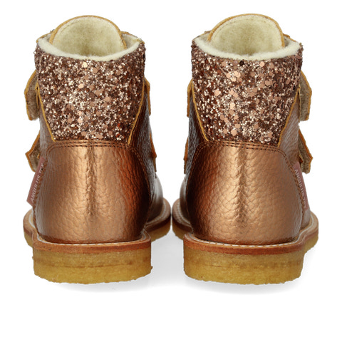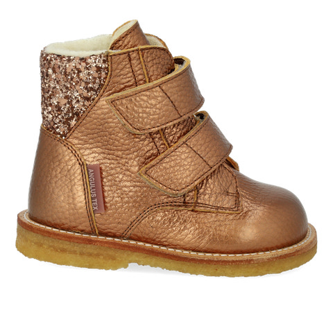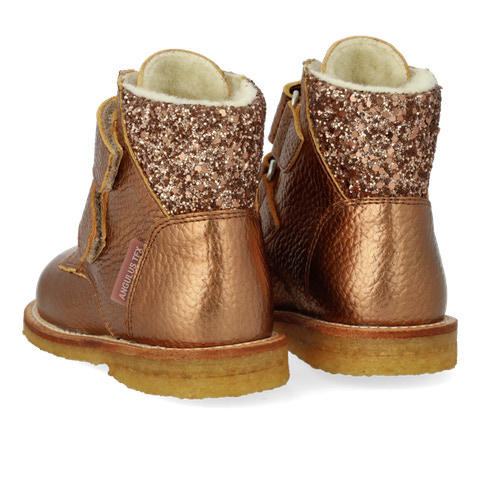 Vandafvisende begynder TEX-vinterstøvle i læder med funklende glitterdetalje bag på.