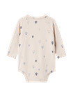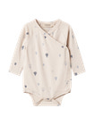 Langærmet bodystocking til nyfødte med slå-om-lukning. Lukkes med trykknapper. Jersey med elastan