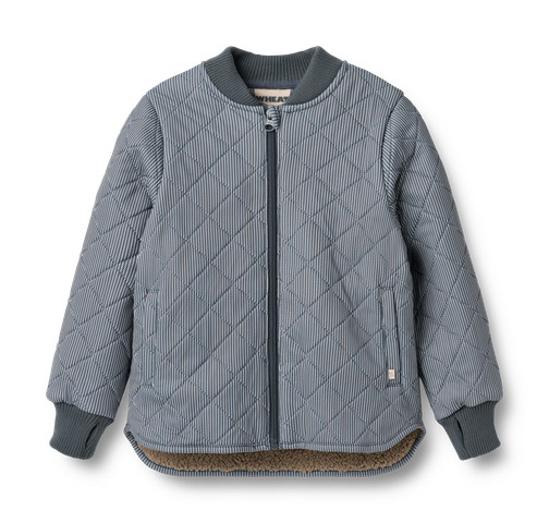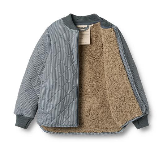 kundeservice@babysam.dkSkøn stribet termojakke med plysfoer til børn. Wheats populære termotøj er en sand hverdagsfavorit, da det bløde og lette materiale gør det behageligt at bevæge sig rundt i. Termojakken er produceret i 100% genanvendt materiale og kan bruges både indendørs, såvel som praktisk overgangstøj, når vejret endnu er lunt udenfor. Jakken er ikke vandtæt, men er vandafvisende.