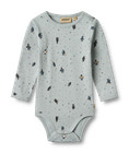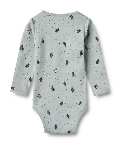Langærmet rib body med print i blødt økologisk bomuld til din baby. Wheats basis body er en sand klassiker i garderoben, når det kommer til småbørn. Denne body har trykknapper på den ene skulder samt i bunden for bedre komfort, når du skal klæde dit barn på. Brug bodyen som den inderste del i ethvert outfit, da den er blød at have tæt på huden.