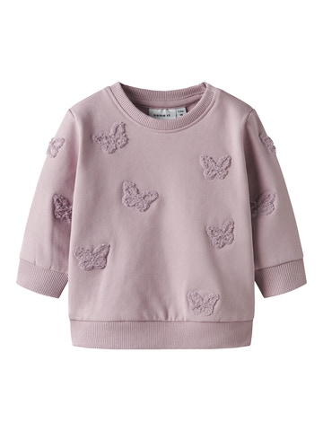 kundeservice@babysam.dkBetina Sweatshirt fra NAME IT er en skøn og behagelig trøje til børn, der elsker både komfort og stil. Sweatshirten er fremstillet i blød bomuld, som føles rar mod huden og giver god bevægelighed hele dagen. Den fine dawn pink farve kombineret med de søde sommerfugle-applikationer giver et feminint og legende udtryk, der passer perfekt til både hverdag og festlige lejligheder. Ribkanter ved ærmer, hals og bund sikrer, at trøjen sidder godt og holder formen, selv efter mange vaske. En ideel tilføjelse til garderoben, som hurtigt bliver en favorit hos de små.