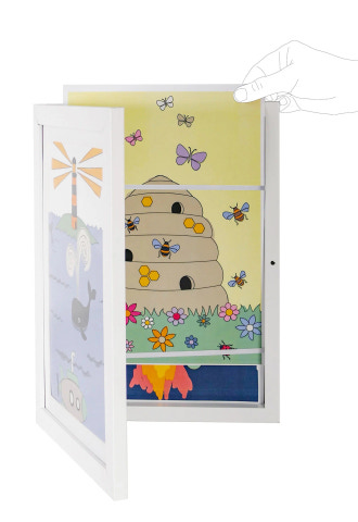 kundeservice@babysam.dkDenne børneramme fra Vanilla Copenhagen er perfekt til at indramme dine børns tegninger og malerier. Rammen kan rumme op til 80 tegninger i A4-format. Den har en magnetlås på forsiden, hvilket gør det nemt at sætte tegningerne ind. De tegninger, der ikke vises, kan opbevares bag rammen ved hjælp af to elastiske bånd. Rammen har to ophængskroge på bagsiden, så den kan hænges både vandret og lodret. Rammen er fremstillet af MDF-træ og har en akrylplade, der ikke splintres som glas, hvilket gør den velegnet til børneværelset. Mål: 24,3 x 33,3 x 4 cm.
