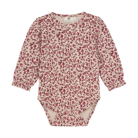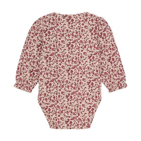 Fin body med all-over print. Denne body er designet med et charmerende print over hele stoffet og er lavet i en blød bomuldsblanding, der føles behagelig og skånsom mod huden. Den har lange ærmer og praktisk lukning med trykknapper mellem benene, hvilket gør den nem at skifte i.