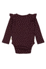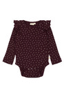 Denne langærmede body er fremstillet i vores klassiske ribkvalitet, som er både blød og meget strækbar – ideel til komfort og bevægelse. Ved venstre side af halsåbningen finder du vores karakteristiske trykknap, der gør det nemt at tage bodyen af og på. Nederst lukkes bodyen med tre praktiske trykknapper, som gør bleskift hurtigt og bekvemt.