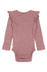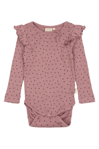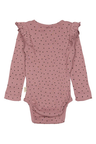 Denne langærmede body er fremstillet i vores klassiske ribkvalitet, som er både blød og meget strækbar – ideel til komfort og bevægelse. Ved venstre side af halsåbningen finder du vores karakteristiske trykknap, der gør det nemt at tage bodyen af og på. Nederst lukkes bodyen med tre praktiske trykknapper, som gør bleskift hurtigt og bekvemt.