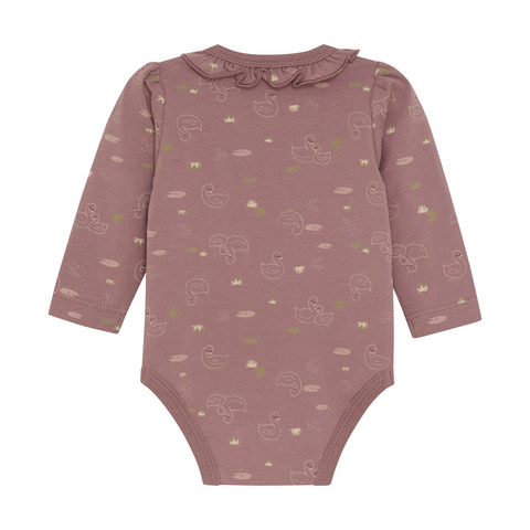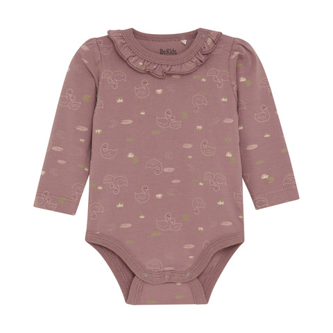 Sød og stilren body fra BeKids med dekorativ krave og flot mønster. Fremstillet i blød bomuld, der er skånsom mod følsom hud. Praktiske trykknapper i skridtet og bagpå for nem på- og afklædning. Perfekt både til hverdagsbrug og finere lejligheder.