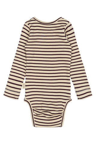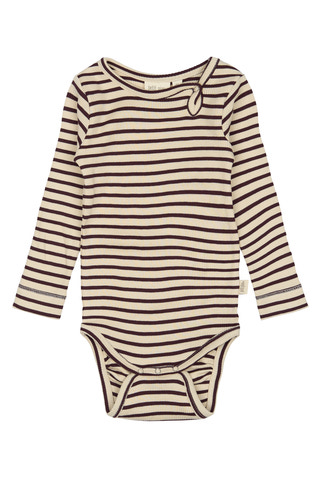 kundeservice@babysam.dkPetit Piao stribet body med de klassiske striber i økologisk bomuld. Striberne er i to farver, hvor bundfarven er en cremefarvet, så striberne beholder sit klassiske look. I halsåbningens venstre side er der en trykknap som gør det nemt at få den over barnets hoved. I bunden er der tre trykknapper, som gør det let at stifte barnet. Ribkvaliteten giver et meget fleksibelt materiale, så barnet har let ved at bevæge sig og lege. Produceret i Indien.