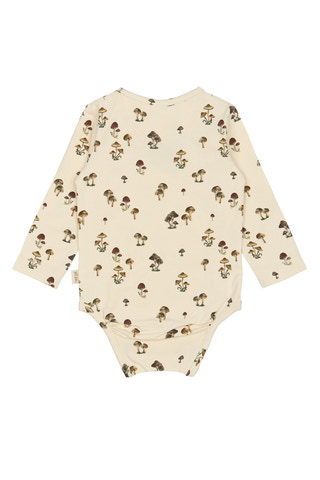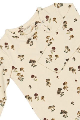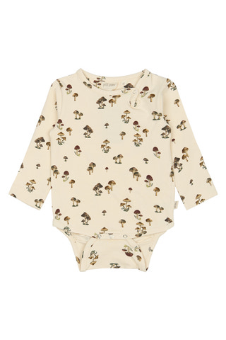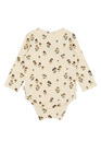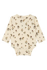 Printede body med akvarelprint fra Petit Piao i økologisk bomuld. Printene er inspireret af naturen og alt omkring den jyske vestkyst. Printene er med en cremefarvet baggrund, så printet er i fokus. I halsåbningens venstre side er der en trykknap som gør det nemt at få den over barnets hoved. I bunden er der tre trykknapper, som gør det let at stifte barnet. Der er 5% elastan i, så barnet har let ved at bevæge sig og lege. Produceret i Indien.