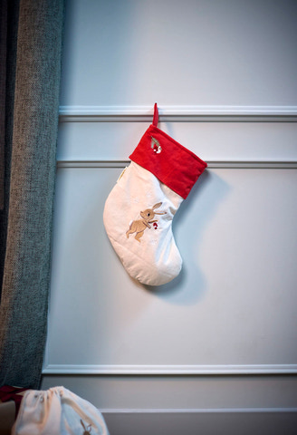 De fine vinterbroderier, som forestiller en sød lille hare, der danser i sneen, vil med garanti bringe smil frem hos både små og store nisser. Det enkle design øverst giver mulighed for at tilføje et personligt præg, såsom et broderet navn eller initial, så julesokken bliver et særligt minde, der kan værnes om i mange år fremover.