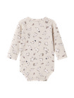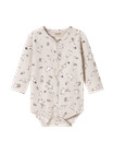 Enkel langærmet bodystocking, der bliver lukket med trykknapper hele vejen ned foran samt mellem benene for nem bleskiftning. Jersey med elastan