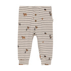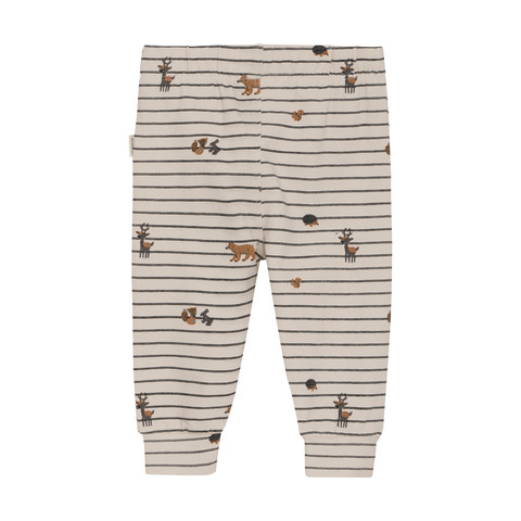 Bukser med striber og sødt dyremotiv fra Minymo. Disse bukser har et legende design med striber og et charmerende dyremotiv foran. De er udstyret med elastik i taljen for en behagelig pasform og har en dekorativ snydegylp med knapper, der fuldender det fine udtryk.