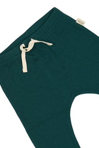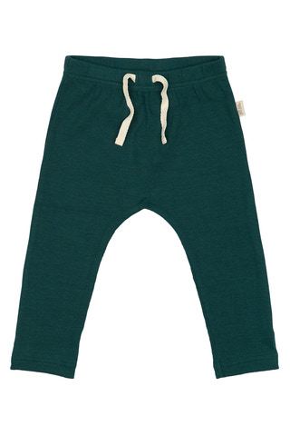 Petit Piao bukser med ensfarvet ribstruktur. Bukserne har en god elastikkant i livet med hvide bindebånd til justering i livet. Bukserne er strækbare og fremstillede af en lækker blanding af bomuld og modal. Produceret i Indien.