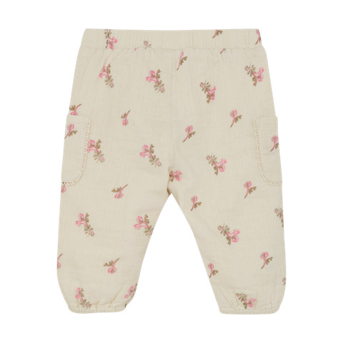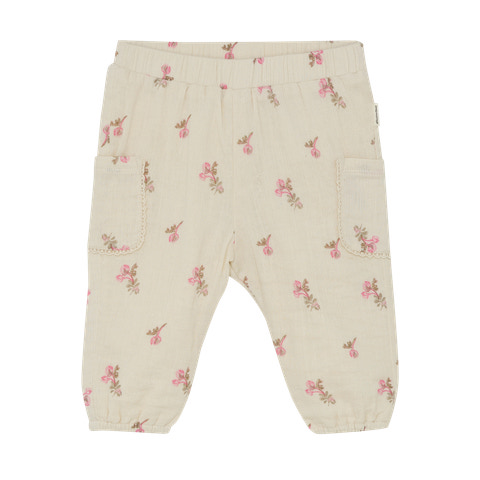Disse bukser fra Minymo med printet "White Swan" er perfekte til både hverdag og festlige lejligheder. Bukserne er lavet i et let og blødt materiale, der sikrer høj komfort for barnet hele dagen. Den elastiske talje gør dem nemme at tage af og på, mens de to lommer foran tilføjer et charmerende og praktisk touch. De fine blomsterdetaljer giver et sødt og feminint udtryk, og elastikkanten ved anklerne sørger for, at bukserne sidder godt uden at stramme. Ideelle til leg og bevægelse, samtidig med at de ser skønne ud.