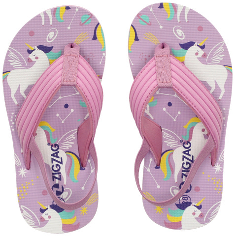 Carmon flip-flops til børn fra ZigZag bringer sjov og komfort på varme dage: De er lette og fremstillet af EVA og neopren, tåler nemt fugt og er behagelige at have på. Det seje, farverige design gør hvert skridt til et blikfang, mens all vejrs profilen giver sikkert fodfæste på forskellige underlag – perfekt til stranden, haven eller legesyge udendørs eventyr.