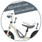 Denne balancecykel har punkterfri dæk og en høj kvalitets metalramme, der kun vejer 2,5 kg. Det perfekte legetøj til at træne dit barns grove motoriske færdigheder, balance og styring. Det specialformede komfortsæde og styret kan nemt justeres i højden. Sædet kan justeres fra 28-37 cm, og styret kan justeres fra 48-51 cm.