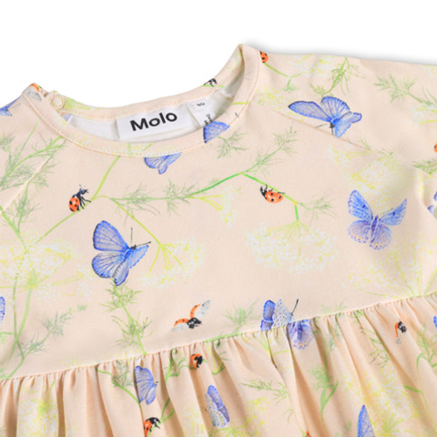 kundeservice@babysam.dkCharmaine Kjole fra Molo er en yndig og komfortabel kjole til de mindste. Kjolen er fremstillet i blød økologisk bomuld med et strejf af elastan, hvilket sikrer en behagelig pasform og god bevægelsesfrihed. Det søde print med blomster og små dyremotiver gør kjolen ekstra charmerende og velegnet til både hverdag og særlige anledninger. Kjolen har lange ærmer og en let rynket skørt, som giver et flot fald og et feminint udtryk. Den er nem at tage af og på, og materialet føles blødt mod barnets hud, så komforten altid er i top.