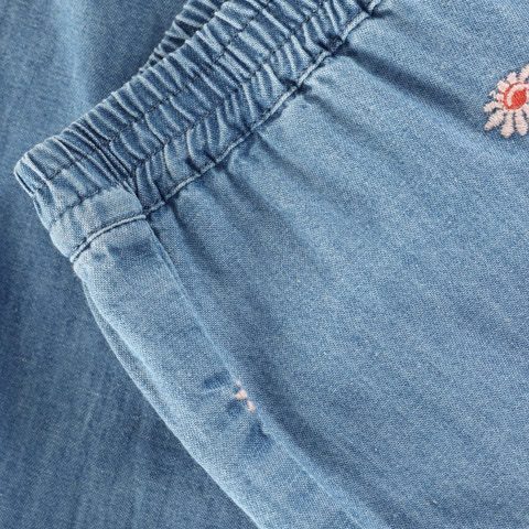 kundeservice@babysam.dkCharmbray Bukser fra Minymo i farven Faded Denim er et skønt valg til hverdagsgarderoben. Bukserne er lavet i en blød og let denimkvalitet, der føles behagelig mod huden og giver masser af komfort til leg og bevægelse. De fine broderede blomsterdetaljer tilfører et sødt og feminint udtryk, mens elastikken i taljen og ved anklerne sikrer, at bukserne sidder godt uden at stramme. Den afslappede pasform gør dem perfekte til både dagpleje og hyggestunder derhjemme. Et par alsidige bukser, der nemt kan styles med både t-shirts og bluser.