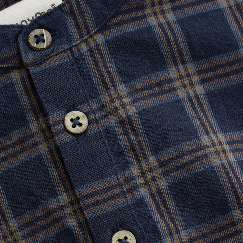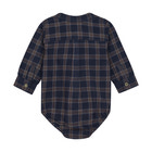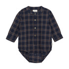 Denne stilfulde langærmede body fra Minymo kombinerer et tidløst ternet all-over design med praktiske detaljer. De gennemgående knapper foran giver bodyen et skjorteinspireret look, der både er sødt og funktionelt.