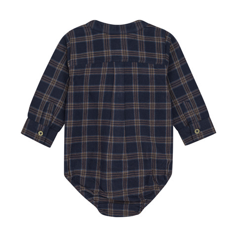 kundeservice@babysam.dkDenne stilfulde langærmede body fra Minymo kombinerer et tidløst ternet all-over design med praktiske detaljer. De gennemgående knapper foran giver bodyen et skjorteinspireret look, der både er sødt og funktionelt.