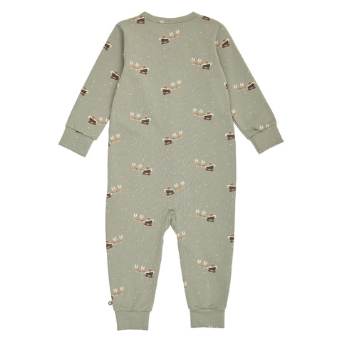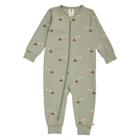 Denne søde heldragt er pyntet med et hyggeligt juleprint med rensdyr og julemandens kane - perfekt til at skabe julestemning for de mindste. Dragten har en praktisk lynlåslukning, der går hele vejen ned, hvilket gør både tøj- og bleskift nemmere for forældrene og mere behageligt for barnet.