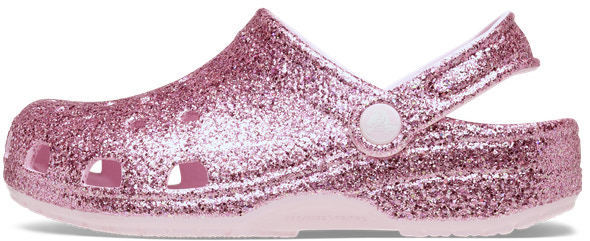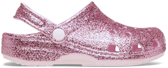 kundeservice@babysam.dkClassic Chunky Glitter Clog T fra CROCS er den perfekte kombination af komfort og sjovt design til børn, der elsker at skille sig ud. Med det iøjnefaldende chunky glitter får skoen et ekstra pift, som gør den oplagt til både hverdag og festlige lejligheder. Den klassiske Crocs-form sikrer, at skoen sidder godt på foden, og det lette materiale gør den behagelig at have på hele dagen. Skoen er nem at tage af og på, hvilket er ideelt for børn, der gerne vil klare det selv. Det slidstærke og hurtigtørrende materiale gør skoen velegnet til både indendørs og udendørs brug, og den er let at rengøre – bare skyl den under vandhanen, og den er klar til nye eventyr. Classic Chunky Glitter Clog T er også udstyret med den velkendte hælrem, som giver ekstra støtte og sikrer, at skoen bliver på foden, selv når legen er vild. Med Crocs får du en sko, der kombinerer funktionalitet, komfort og et glitrende look, som børn vil elske.