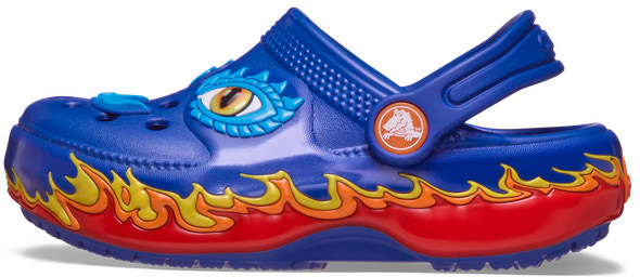 Classic Dragon Lights - Blue Bolt fra CROCS er den perfekte kombination af sjov og funktionalitet til børn, der elsker eventyr og farver. Skoen har unikke dragedetaljer, der lyser op, når barnet går, hvilket gør dem ekstra spændende og motiverer til leg og bevægelse. Den lette konstruktion sikrer, at skoen er behagelig at have på hele dagen, og den ikoniske Crocs pasform giver masser af støtte til små fødder. Materialet er nemt at rengøre og hurtigtørrende, så skoen kan bruges både indendørs og udendørs uden bekymringer. Med den justerbare hælrem sidder skoen sikkert på foden, og barnet kan nemt tage dem af og på selv. Classic Dragon Lights er ideel til både hverdag og festlige lejligheder, hvor komfort og sjov går hånd i hånd.