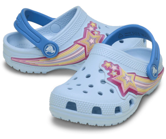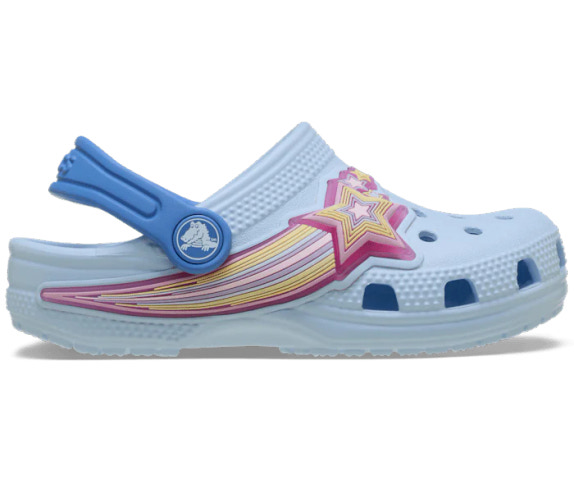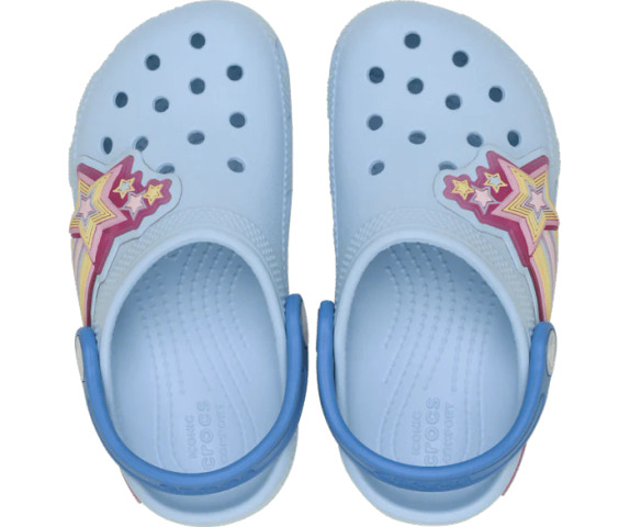 Lad små fødder lyse dagen op med Crocs Classic Star Lights Clog! Den klassiske model har fået en stjernefyldt opgradering med blinkende lys, der aktiveres ved hvert skridt. Fremstillet i let og behageligt Croslite™-materiale med en sikker hælrem, der holder skoen på plads – perfekt til legesyge børn, der elsker både komfort og lidt ekstra magi.