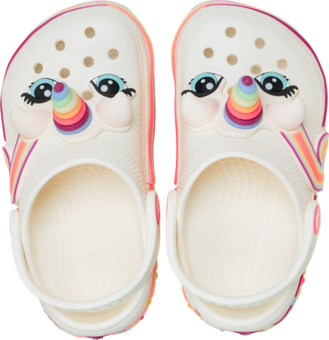 Classic Unicorn Lights fra Crocs er et par legesyge og komfortable sko, der passer perfekt til børn med fantasi og energi. Med et farverigt enhjørningemotiv og indbyggede lyseffekter bliver hvert skridt et eventyr. Skoene er fremstillet i det klassiske Croslite™-materiale, som gør dem både lette og vandafvisende – ideelle til leg både inde og ude. Den justerbare hælrem giver ekstra stabilitet og sikrer, at skoene sidder godt fast på foden. Classic Unicorn Lights er nemme at rengøre og tåler både vand og snavs, hvilket gør dem til et praktisk valg for aktive børn. Med disse Crocs får dit barn både komfort og stil – og masser af glæde i hvert skridt!