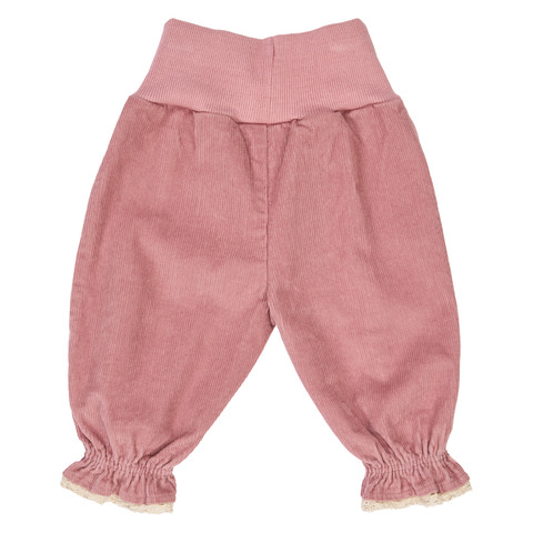 kundeservice@babysam.dkDisse søde bukser er syet i den blødeste fløjl og har en behagelig, løs pasform med vidde i benene. De har elastik i taljen og ved benafslutningen, hvilket giver en god og fleksibel pasform. En fin, feminin detalje nederst på benet fuldender det charmerende udtryk.