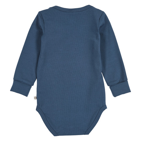 Denne lækre langærmede body er lavet i en blød og strækbar single jersey med 95 % økologisk bomuld og 5 % elastan, hvilket sikrer en optimal pasform og lang holdbarhed. Bodyen har en praktisk amerikansk lukning ved halsen, som gør det nemt at tage den på nedefra - en mere behagelig løsning for både barn og forælder, da man undgår at trække den over hovedet.
